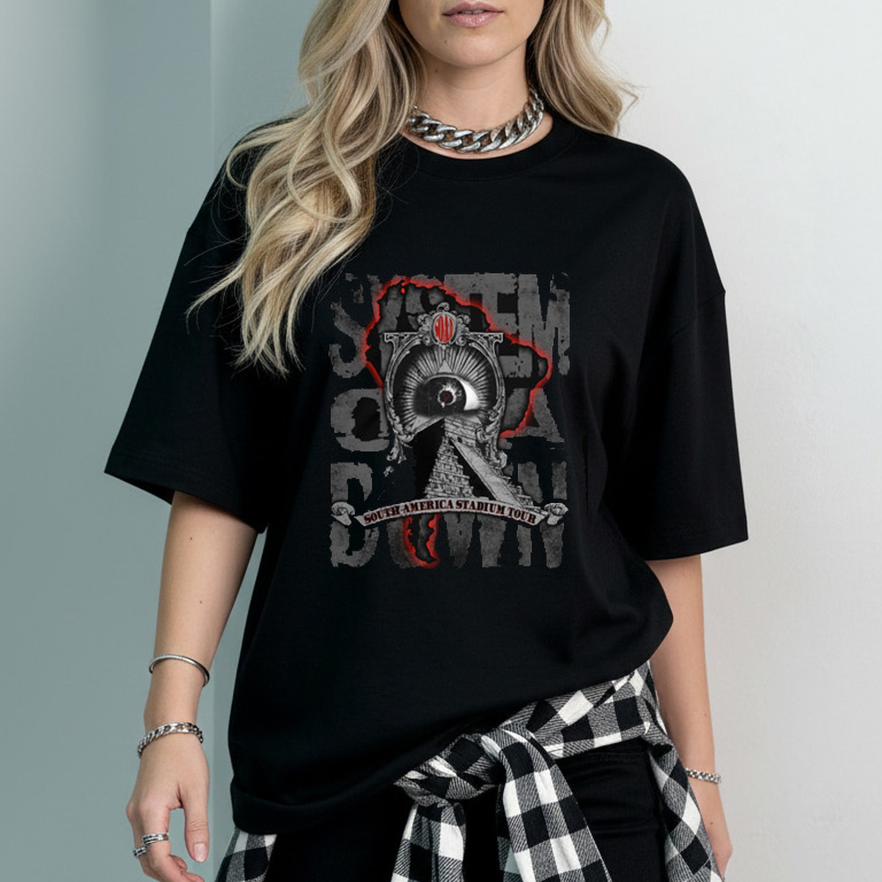 A Camiseta Oversized System of a Down é a escolha ideal para quem busca atitude, autenticidade e conforto em uma única peça. Com estampa frontal impactante inspirada na estética marcante da banda, o design traduz a essência do metal alternativo com um visual forte e contemporâneo.