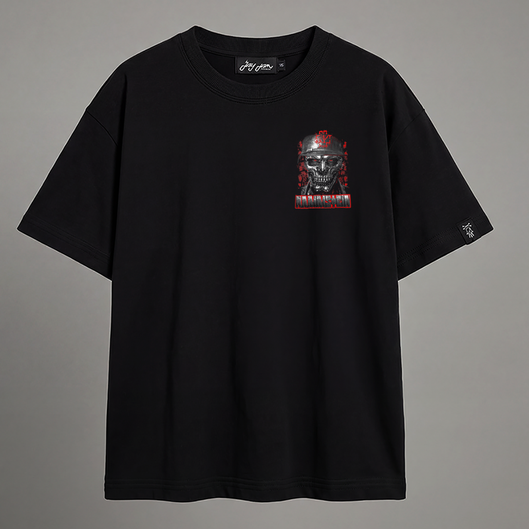 Camiseta Oversized Masculina Streetwear Rammstein Skull Soldier Preto - JayJam Rockwear