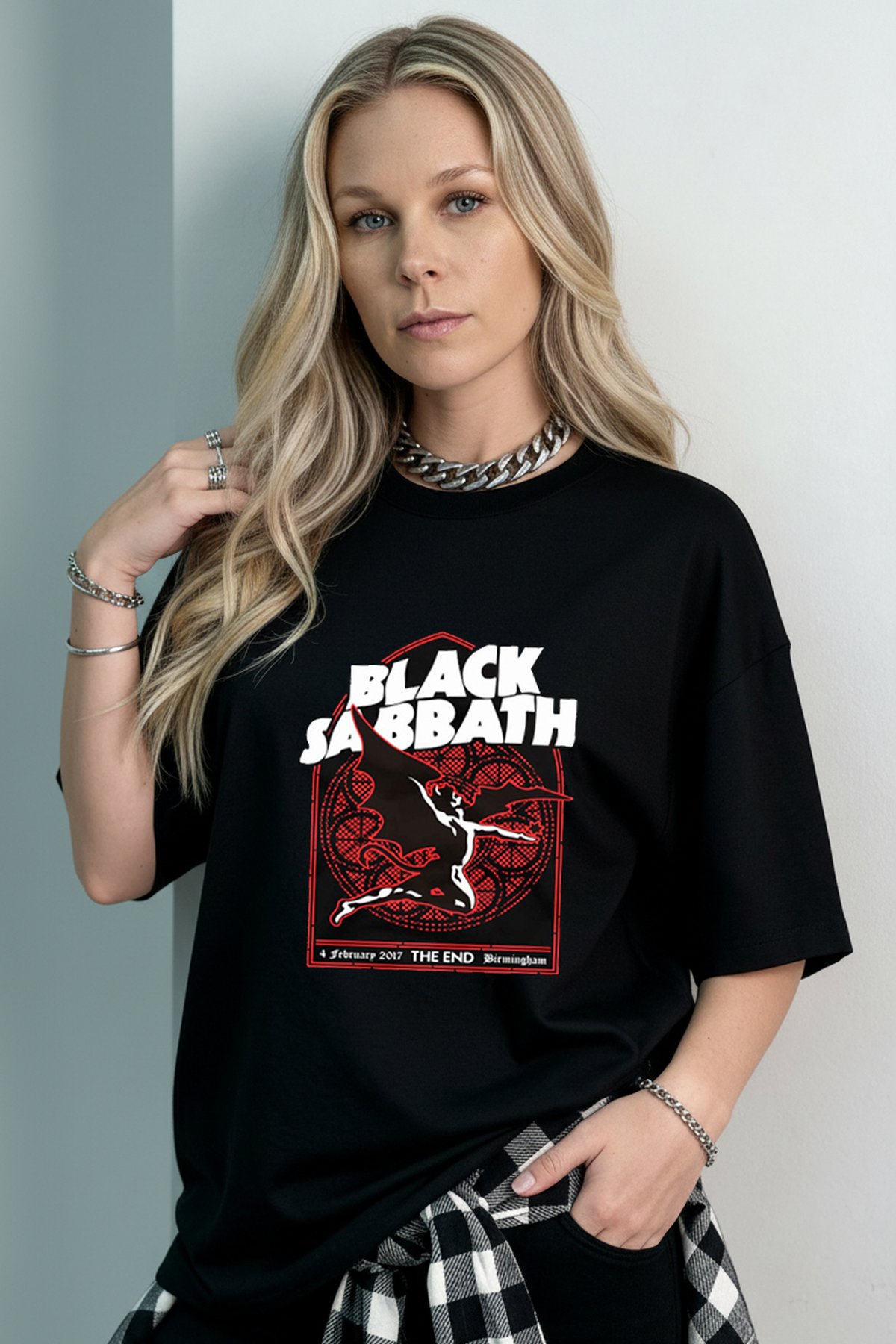 Uma peça icônica para quem carrega o rock como estilo de vida. A camiseta oversized Black Sabbath – The End traz uma estampa marcante inspirada na turnê de despedida da banda, com visual forte, autêntico e cheio de atitude.