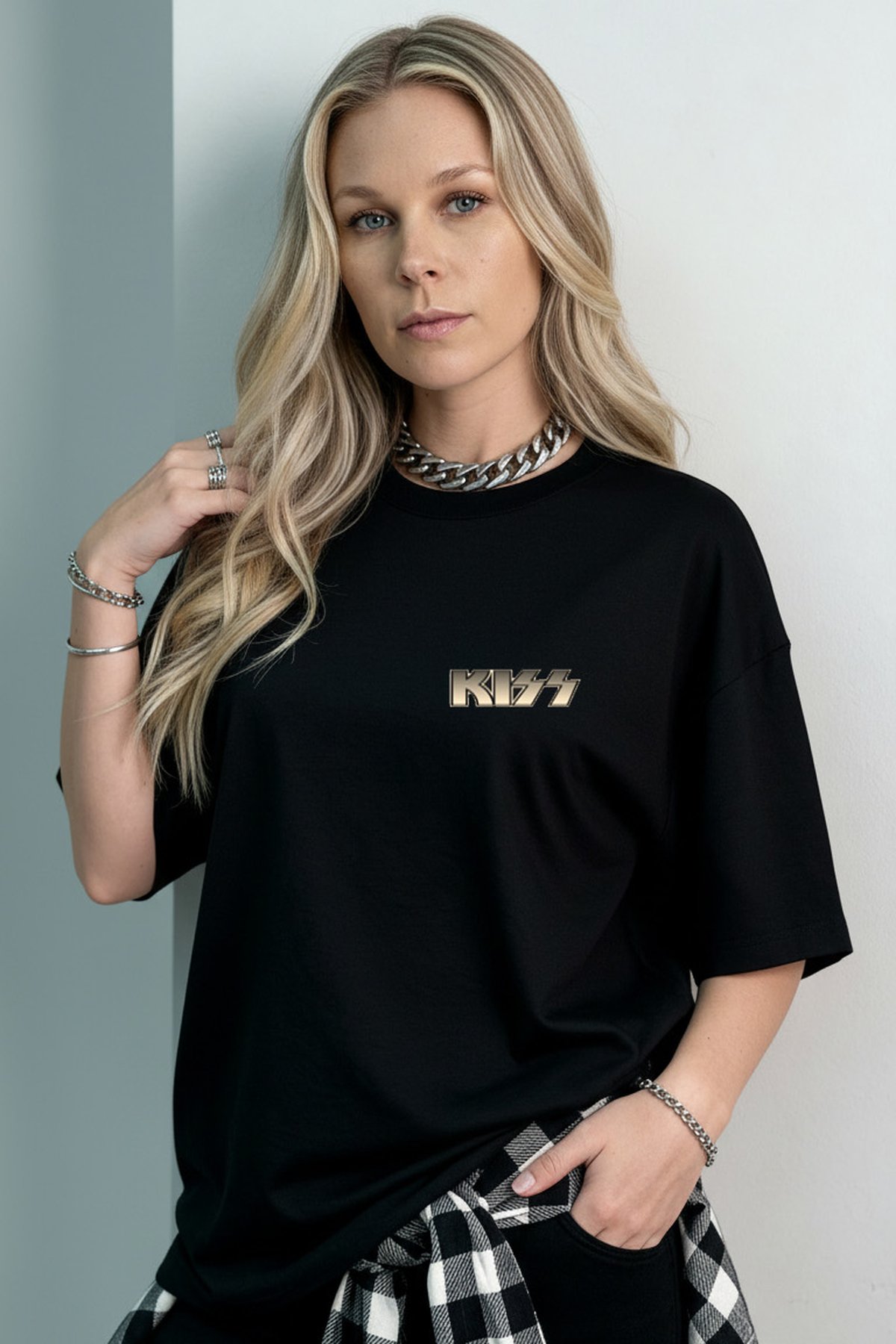 Autenticidade, atitude e muito rock em uma única peça. A Camiseta Oversized KISS Army é perfeita para quem vive o estilo rock’n’roll e busca conforto aliado a um visual marcante. Com design exclusivo, a camiseta traz o logo discreto do KISS na parte frontal e uma estampa poderosa nas costas com caveiras e a identidade “KISS Army”, garantindo impacto e personalidade ao look.