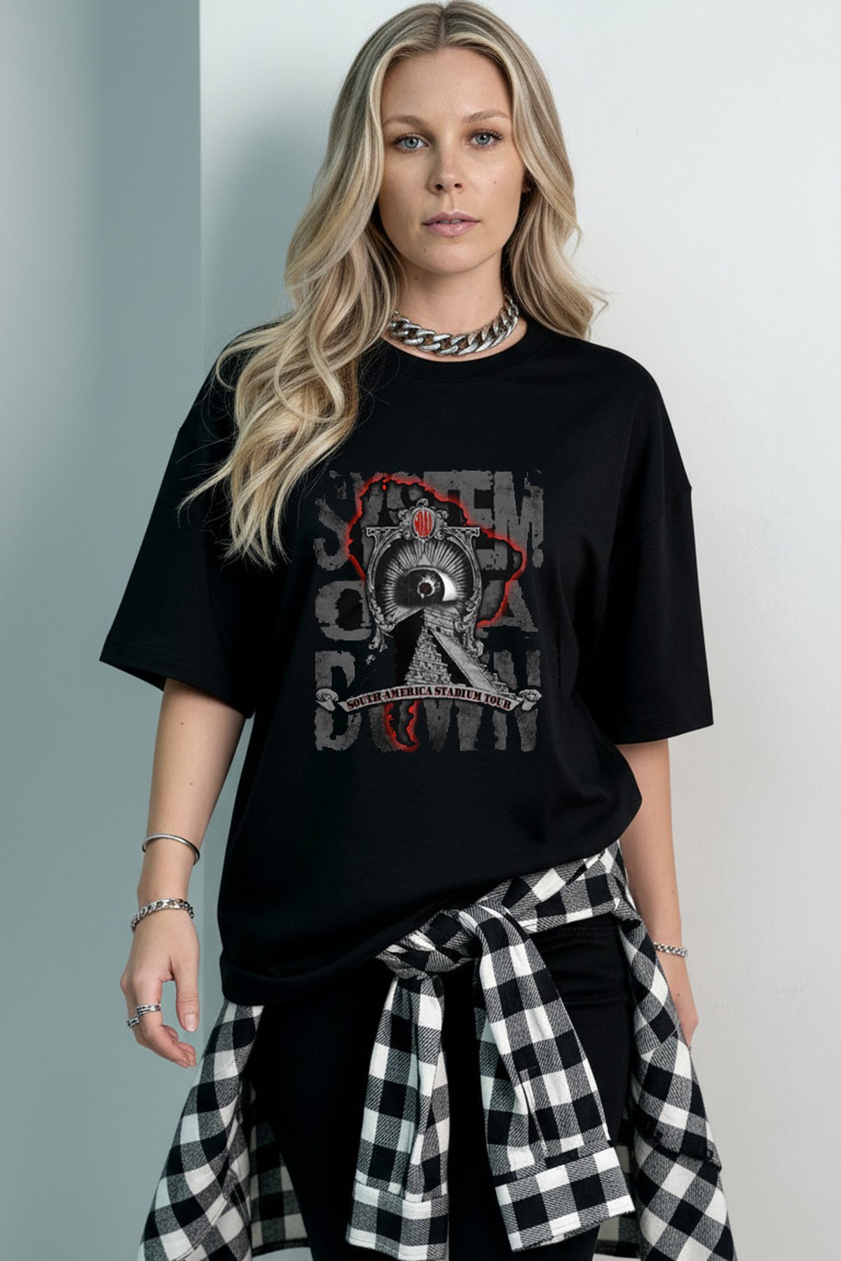 A Camiseta Oversized System of a Down é a escolha ideal para quem busca atitude, autenticidade e conforto em uma única peça. Com estampa frontal impactante inspirada na estética marcante da banda, o design traduz a essência do metal alternativo com um visual forte e contemporâneo.
