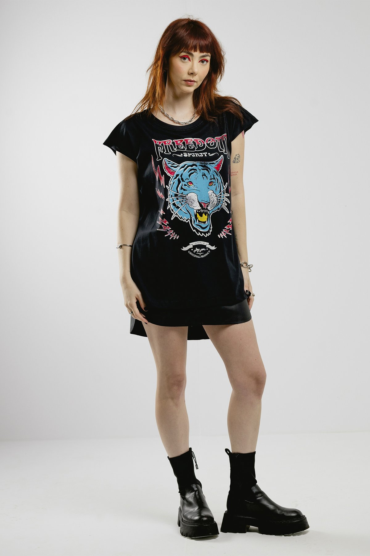 Use com shorts, saia de couro, calça jeans ou sozinha como mini dress. Finalize com coturno, colares e atitude de sobra.